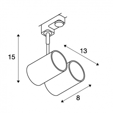 Systémové svítdlo - 2ks pro tříokruhovou lištu - bílé barvy, 230V. Svítidlo lze natáčet o 350°. Reflektory jsou náklopné v jedné ose 200°. Hlavice průměr/V 6/7,8.