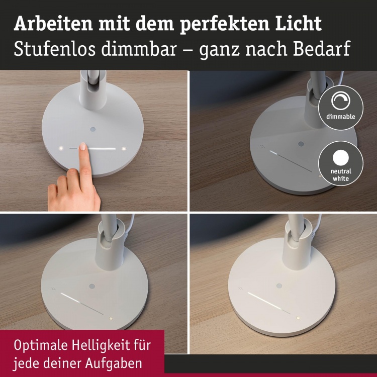 Stolní lampa s variabilním systémem polohování a funkčním designem. 15W je maximální příkon svítidla. Světelné zdroje je třeba vybírat tak, aby tato hodnota nebyla překročena. Svítidlo PAULMANN lze osadit světelným zdrojem patice LED. kov / plast jsou hlavními materiály, které byly použity při výrobě tohoto svítidla. Krytí IP20 předurčuje toto svítidlo k používání v suchých prostorech.